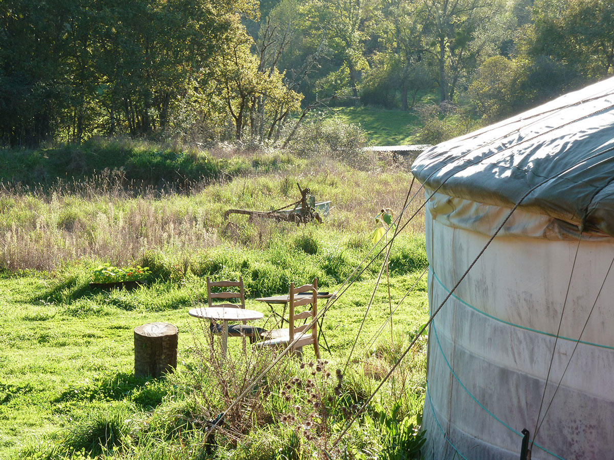 Nous vivons en yourte au cœur des terres, sur une petite colline donnant une vue dégagée sur l’environnement vallonné des terres. Notre yourte est une yourte quatre saisons de 7 mètres de diamètre (38 m²) qui a déjà 10 ans.